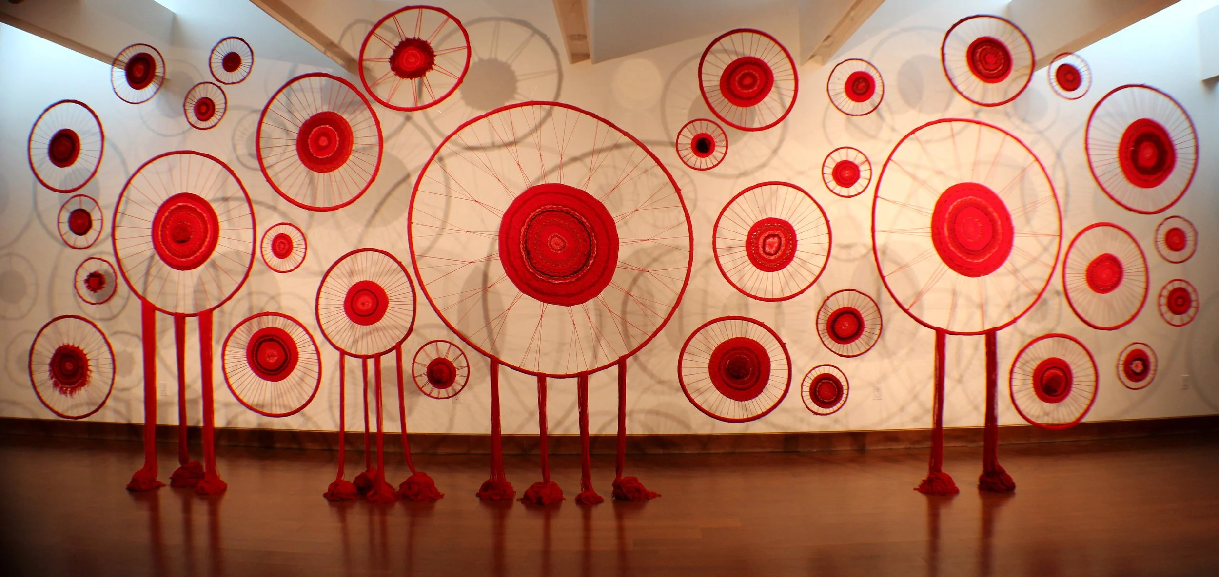 The #HopeAndHealingCanada project created by Métis artist Tracey-Mae Chambers consists of a series of site specific art installations across Canada. Each is made using crochet, knit and woven red yarns. This ongoing body of work is used to illustrate connections between Indigenous, Inuit and Métis peoples with Canadians, while also addressing the decolonization of public spaces.
